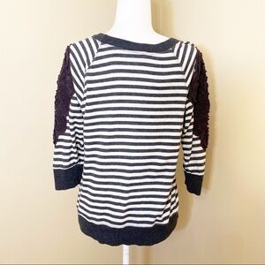 Daytrip Embroidered Sleeves Striped Top - Medium
