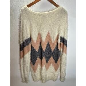 Daytrip Fuzzy Chevron Sweater Women’s L Cream Tan Gray Soft Cozy Long Sleeve
