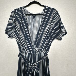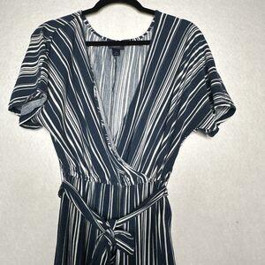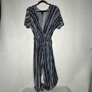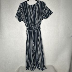 Daytrip Jumpsuit Womens Medium Striped Jumper Flowy Wide Leg Belt Wrap Front Top