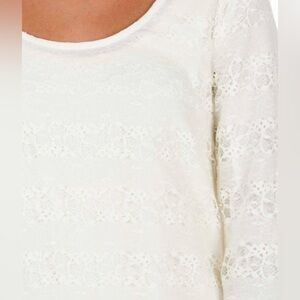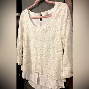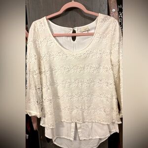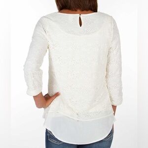 Daytrip Lace Overlay Top, medium, Back keyhole uneven hem top