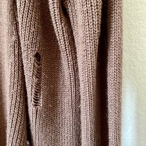 Daytrip brand from Buckle. Lavender/Mauve Color. Open front cardigan. Intentional distressing throughout. Pockets. Length falls to mid-hip. Cozy and stretchy. Great layering piece.