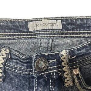 Daytrip Leo Bootcut jeans have white stitching throughout and a little bit of bling. Jeans have some of the stitching coming undone on the back but other than that they are in great condition. Jeans are size 24R.