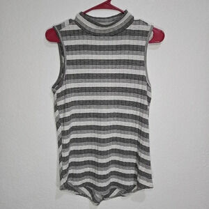 Daytrip Medium Striped Mock Neck Cut Out Open Back Soft Knit Sleeveless Tank Top