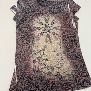 This Daytrip t-shirt showcases a captivating graphic design in rich purple hues, perfect for adding a touch of artistry to your wardrobe. The short sleeves and intricate mandala-style patterns make it a standout piece for casual occasions. Its unique style is ideal for those who appreciate a blend of creativity and fashion.