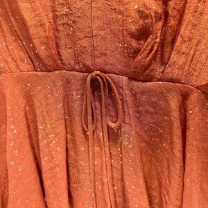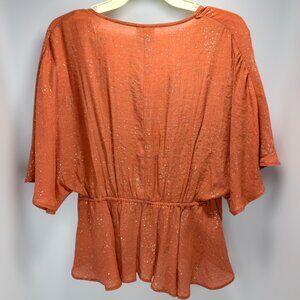 Daytrip Rust Metallic Tie Waist Peplum V-Neck Top