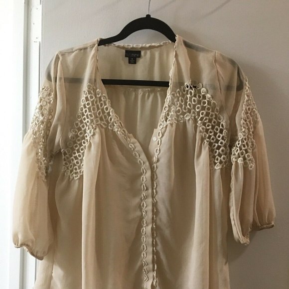 Daytrip Sheer Long Sleeve Button Down Blouse Top size M