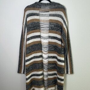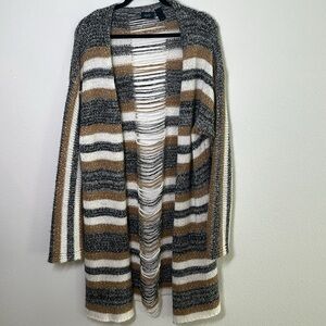 Daytrip Shredded Back Knit Cardigan Size Large Striped Longline Duster