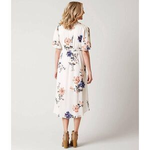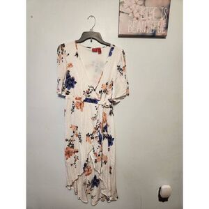 Daytrip Size S Chambray Cabernet Floral Hi- Low Wrap Dress
