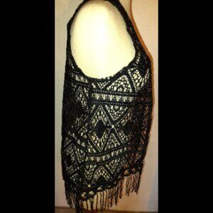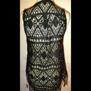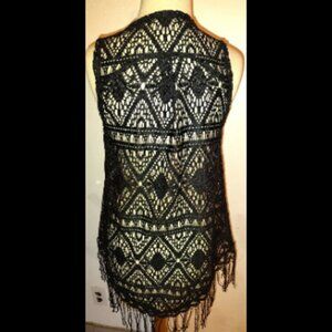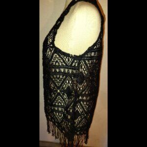 Daytrip Size Small Black Lace Open Front Vest Tassel Bottom 100% Polyester Geome