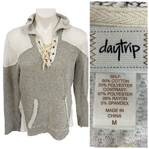 Daytrip Sweater Womens Size Medium Hooded Lattice Knit Athleisure Distressed
