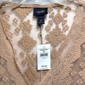 Daytrip Tan Sheer Embroidered Lace V-Neck Oversized Top