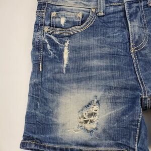 Daytrip Taurus Boyfriend Denim Blue Jean Shorts Size 24 Distressed Aztec Sequin