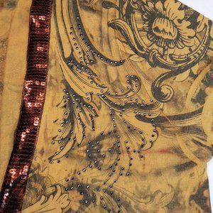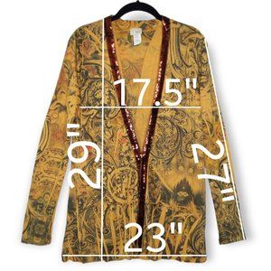 Daytrip Thin Knit Open Cardigan Sweater Size L Yellow Sequin Collar Studded