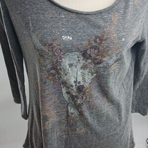 Daytrip Top Western Cow Skull Open Back 3/4 Sleeve Stretch Womens Size M