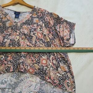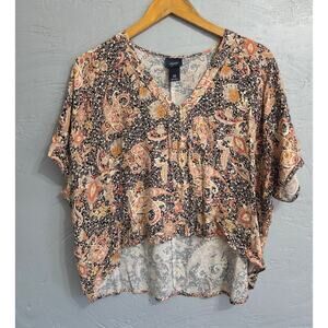 This Daytrip blouse is a beautiful addition to any wardrobe! It features a flattering V-neck and a silky smooth fabric that feels amazing against the skin. The size is XS, perfect for a petite frame.