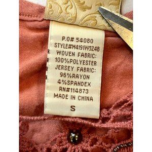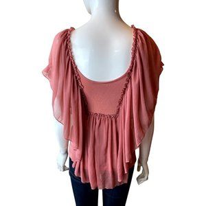 Daytrip Women's Cocktail Beaded Blouse Top M4191W5248 Flutter Sleeve Pink Small