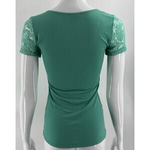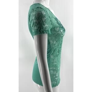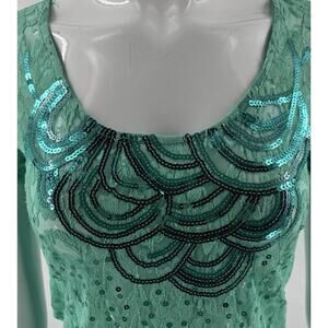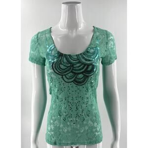 Daytrip Womens Lace Top Green Sequins Size Medium Short Sleeve Scoop Neck Y2K