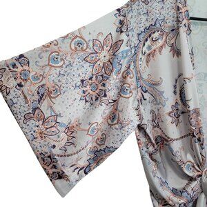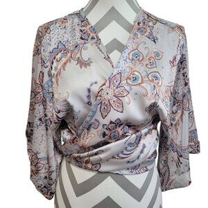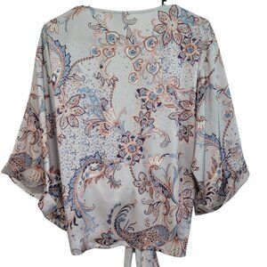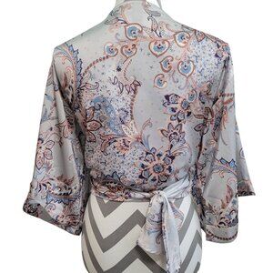 Daytrip Womens Sz S Silky Floral Paisley Short Kimono Jacket Blouse Boho Hippie