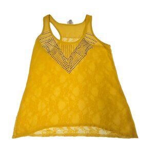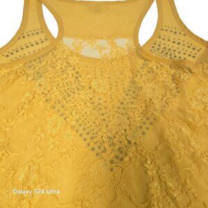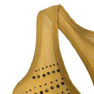 Daytrip Yellow Racerback Tank Top Rhinestones Sheer Lace Overlay Medium