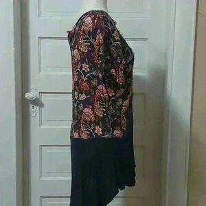 Needs only a botton on the back. Very pretty great condition. Size M. Pit to pit 16" flat. Shoulder to hem 26". 100% Rayon. Wash delicate. Dry flat.