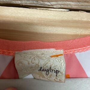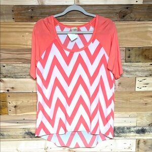 Daytrip size Med Coral and White Chevron Pattern Lightweight Short Sleeve Blouse