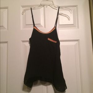 Daytrip tank with spaghetti straps. It has neon stitching across top an pocket. Chiffon along bottom on front and back. Only worn a few times. In great condition!