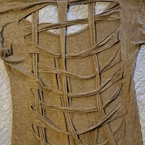 Gray Daytrip tunic with ripped back, size small. One side is messing a bead but still a really cute shirt!