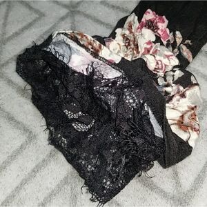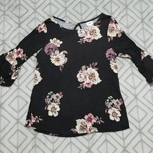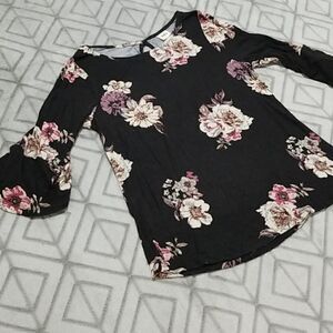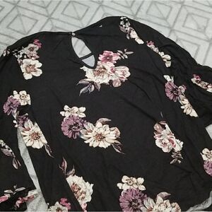 Daytrip Black & Pink Floral Keyhole Lace Dainty Chic Flounce Sleeve Blouse.