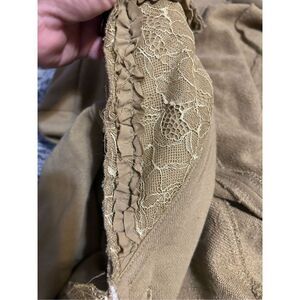 Size small but is stretchy. Light green tan color. 2 buckles on the front. Lace trim detail. In excellent condition