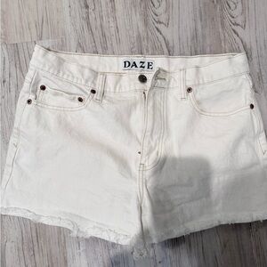 Stylish cream denim jean shorts by Daze. Perfect for casual wear.