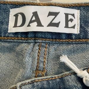 Daze Denim Backstage Mid Ride Straight Jeans in Blue Time Out Stone Wash Denim. Intended to sit at the natural waist and cut with a cropped straight leg. Stretch denim has a mid-weight feel and will give with regular wear.