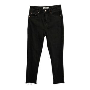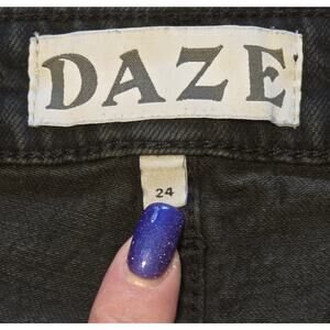 Daze Jeans Womens Tough Love Size 24 Black. 50% Organic Cotton, 49% Cotton and 1% Elastane. Very light distressing at waist with a Raw Hem. Button and Zip Closure with a 5 Pocket Design. In excellent preowned condition.