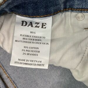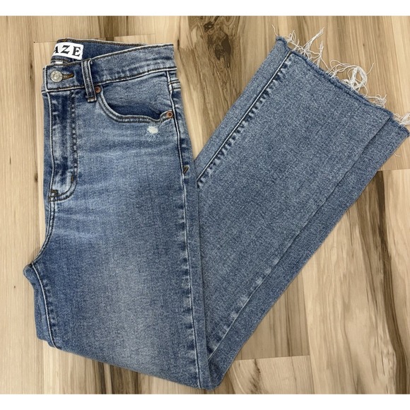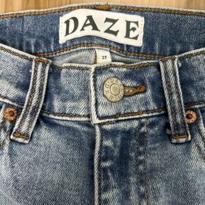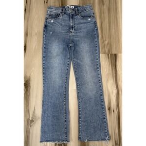 Daze Women's 27 Hug Jeans High Rise Cropped Boot Leg Distressed Raw Hem Stretch
