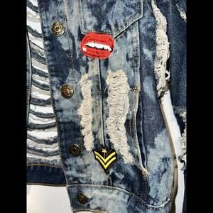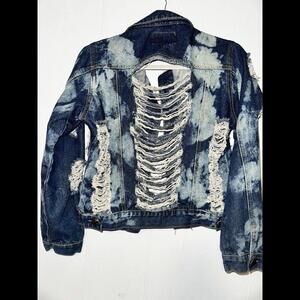 Dazl Distressed Acid -Washed Denim Jacket Size XL Light Wash Ripped Grunge