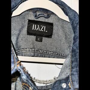 Elevate your casual wardrobe with this Dazl Distressed Acid-Washed Denim Jacket in size XL. The jacket also has pockets for added convenience.