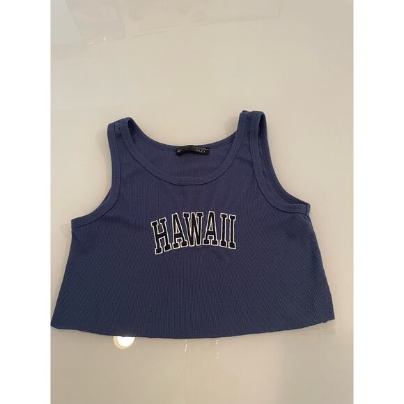 Dazy Cropped Hawaii Tank Top Size Small Blue Polyester/Viscose Blend