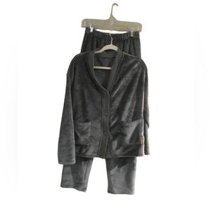 Dazy size medium floor gray long sleeve top and pants set. Features a button front and pockets. Made of 100% polyester. Excellent condition. Perfect for loungewear.