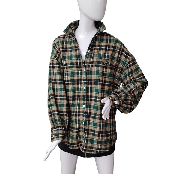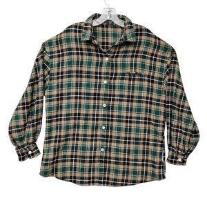 Dazy Plaid Green and Tan Shirt Size Large Long Sleeve Button Down