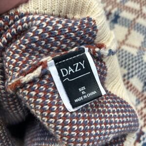 Dazy Sweater Vest Beige Plaid Knit V-Neck Pullover Indie Academia XL