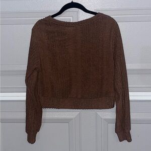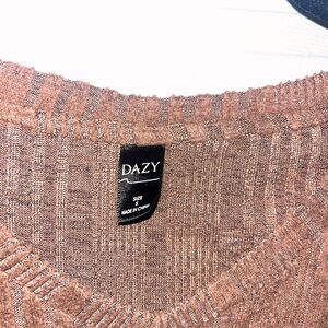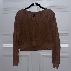 Dazy Women's Pullover Brown V-neck Sweater Size Small long sleeve cropped