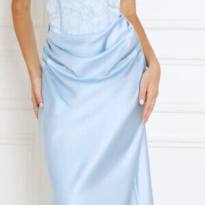 Wore this dress as a bridesmaid in my brother's wedding and ADORED it. Sadly, now I've been photographed in it and we have to part. But this is one of my favorite dresses I've ever worn. I'm 5'7 and 145 pounds for reference. I wore about 3.5 inch heels with it.