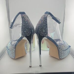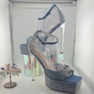 Dazzling Denim Blue Crystal Platform Heels