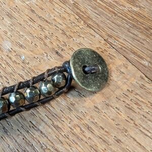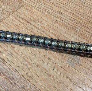 Oh-so-glamorous and versatile, this leather wrap bracelet is the perfect touch of boho sparkle for your wrist! π With shimmering metallic beads and rich brown leather, itβs a standout accessory for any outfit. This piece is ready to wrap around twice, giving you that effortlessly layered look. π