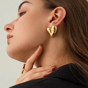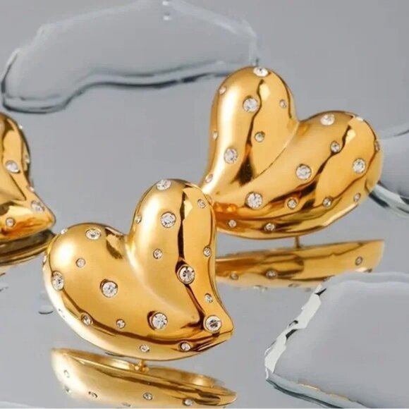 Dazzling Golden Heart Stud Earrings with Crystal Embellishments ✨💕