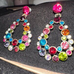 Add a vibrant pop of color to your look with these stunning multi-color rhinestone teardrop dangle earrings! Featuring a beautiful array of brightly hued crystals in a stylish open teardrop design, these earrings are perfect for adding sparkle and flair to any outfit. The post-back closure ensures comfortable and secure wear. Ideal for parties, special occasions, or simply adding a touch of glam to your everyday. Excellent condition.