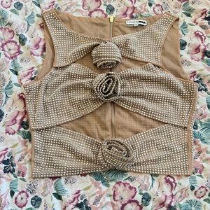 Missing 3 embellishments. Nothing noticeable since it’s in the back and the mesh and stones are close in color