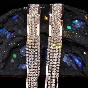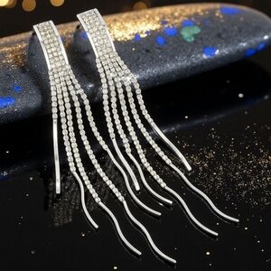 Rhinestone drop earrings, long drop earrings, silver plated earrings, party earrings, elegant earrings, evening jewelry, special occasion earrings, sparkling rhinestone earrings, 925 sterling silver earrings, fashion jewelry, statement earrings, glamorous earrings, bridal earrings, prom earrings, silver fashion jewelry, formal earrings, silver rhinestone jewelry, luxury earrings, lightweight earrings, silver drop earrings, trending earrings, party accessories, silver jewelry for women, crystal earrings, wedding earrings, dangle earrings, silver rhinestone drop, stylish earrings, rhinestone dangle earrings