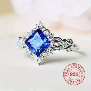 Dazzling Sterling Silver Blue Gemstone Ring Timeless Luxury Size 6 7 8 9