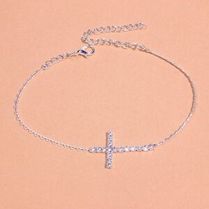 Dazzling Tennis Flexible Cross Anklet, Foot Jewelry