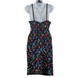 Dazzling Vintage Black Stretch Dress with Hand-Embroidered Multicolored Sequins | Size Medium